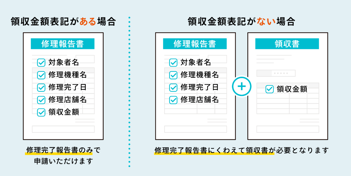 申請には次の内容が記載された修理報告書が必要なので、修理後に必ず受け取りましょう。
