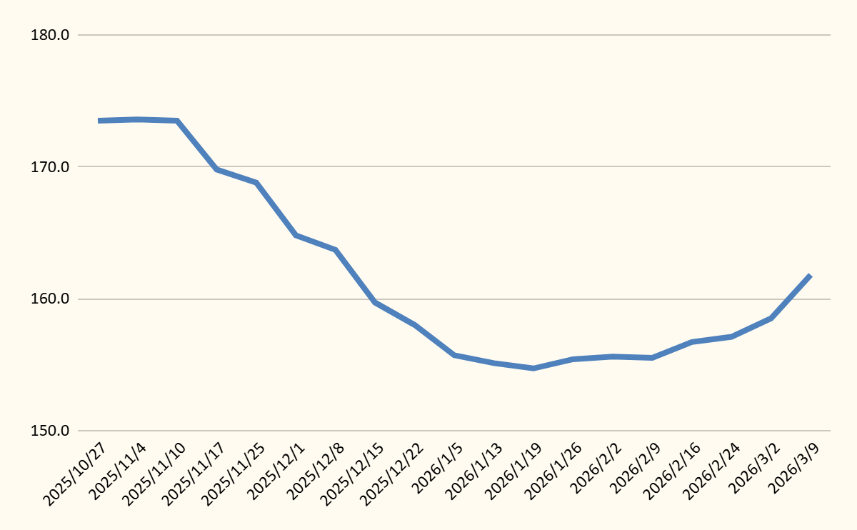しかし、その後は原油高の影響で1月下旬からじわじわと上昇し、3月に入ると上昇ペースが加速。3月9日時点の店頭現金小売価格は、161.8円/Lと4週連続の値上がりとなりました。さらに、3月16日時点で200円/Lを超えたガソリンスタンドもあります。